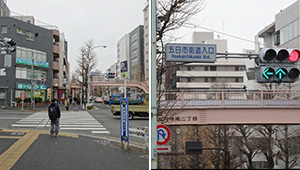 交差点「五日市街道入口」の信号を渡ってから左に曲がります。